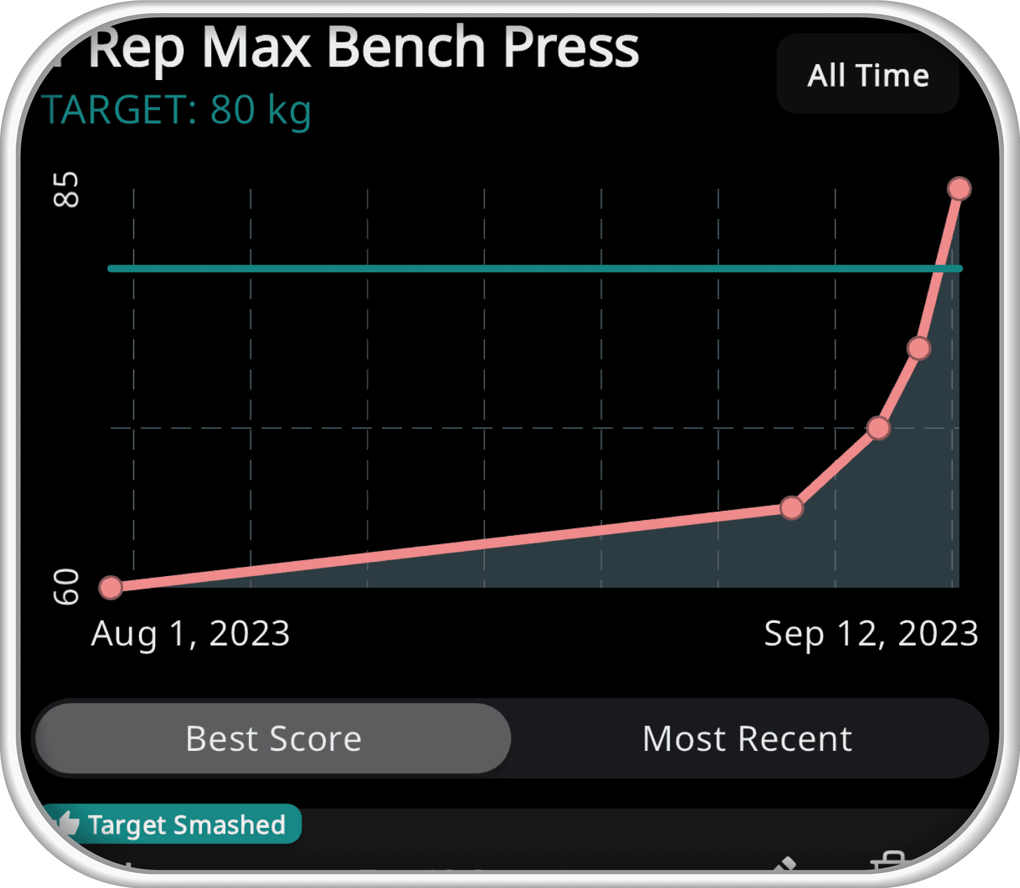 Incorporating industry-standard tests and custom benchmarks into your fitness tracking adds a layer of precision and customisation to your journey. It's all about helping you set meaningful goals, track your progress with accuracy, and continually strive for improvement. Share progress with you team or your PT for feedback and guidance on how you can smash your targets.